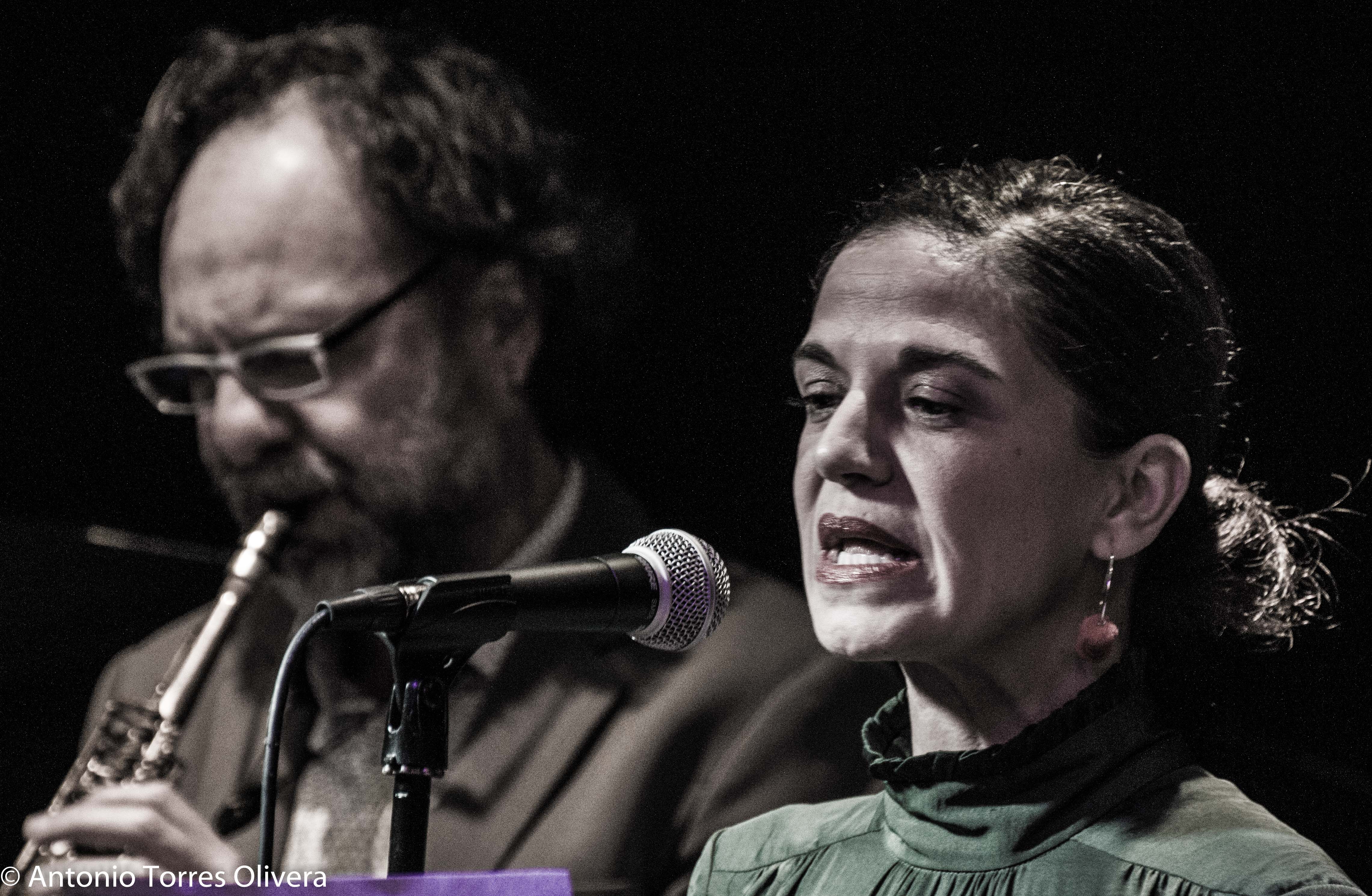 Amada Blasco, recitación; Pedro Cortejosa, saxos; Miguel López, piano; David León, batería.